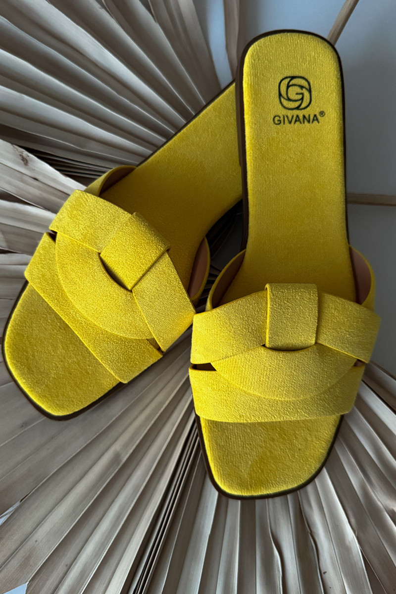 Zapatillas de mujer planas con tiras de ante sintético, color amarillo Florane