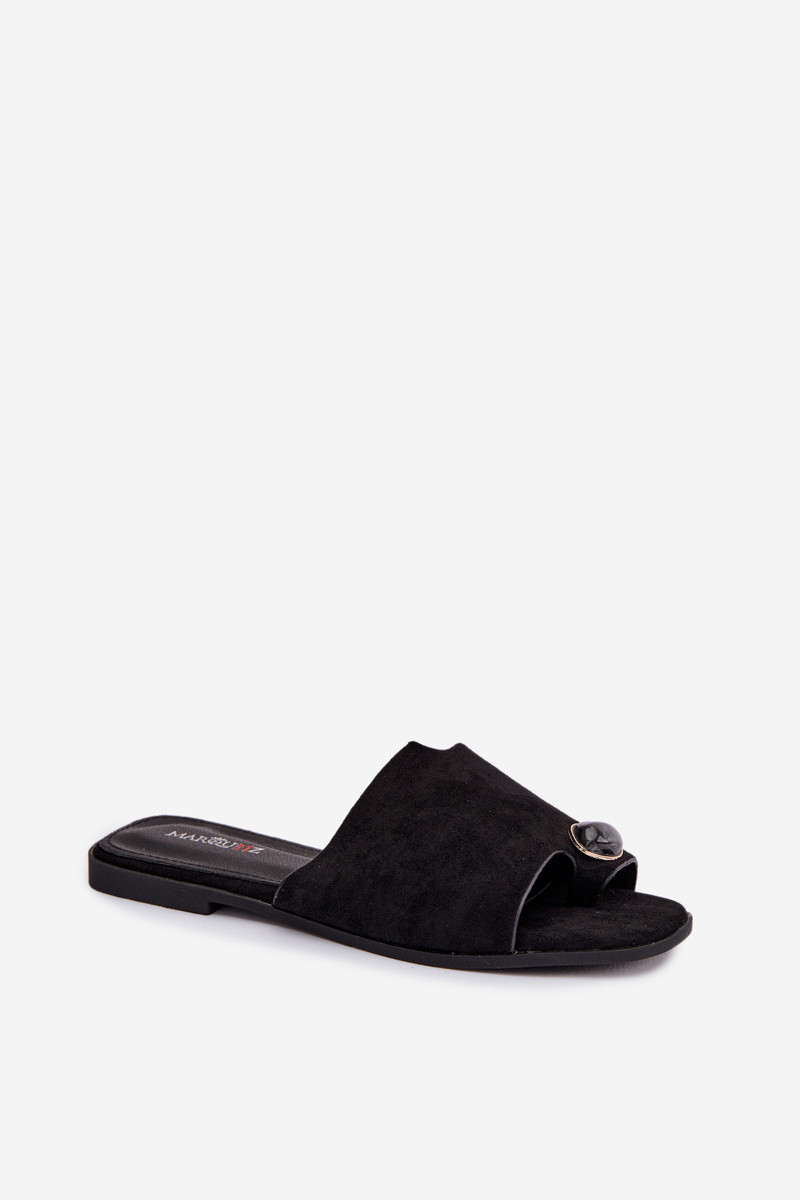 Zapatillas bajas de mujer con detalles decorativos de ante sintético, color negro, Selavine