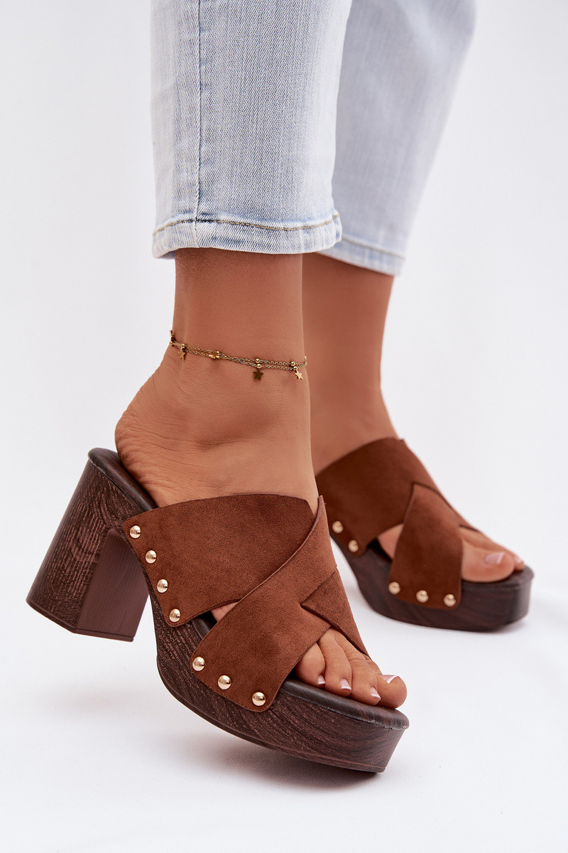Zapatillas de mujer con tacones y clavos dorados de color marrón Nerelle