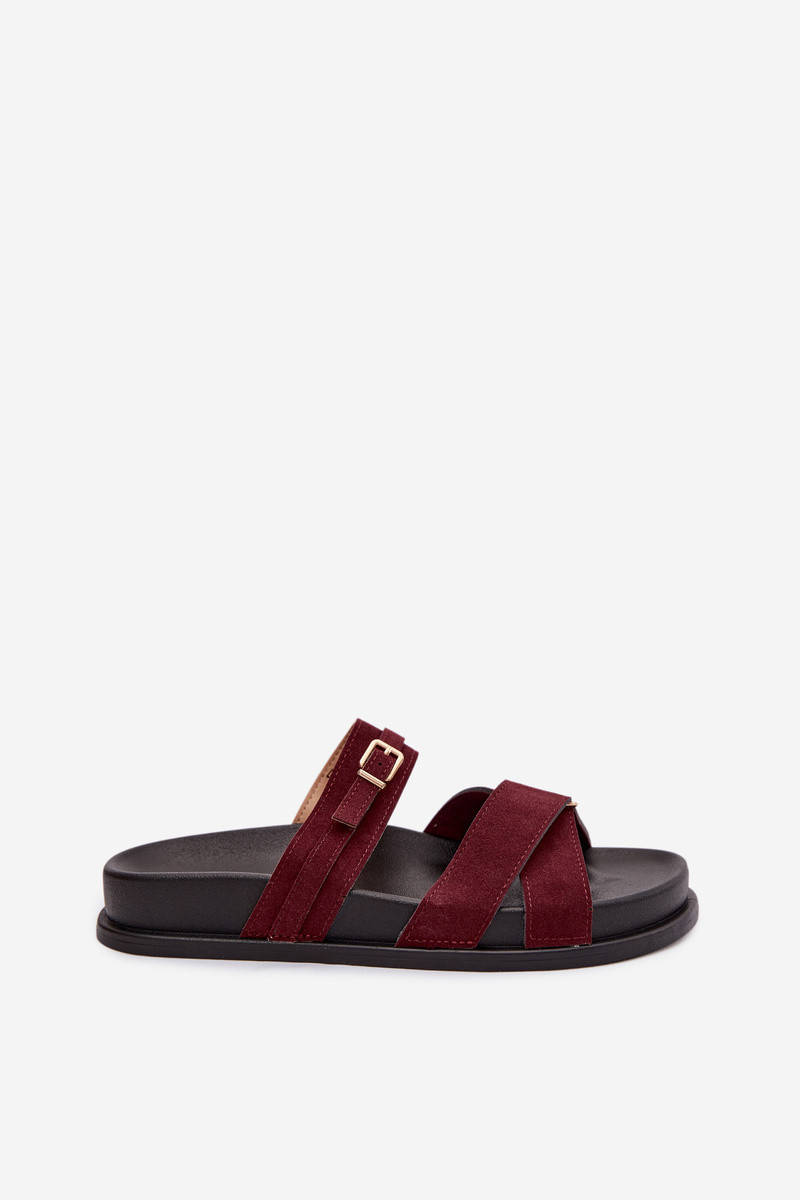 Chanclas para mujer con tiras y hebillas doradas color burdeos Selorina
