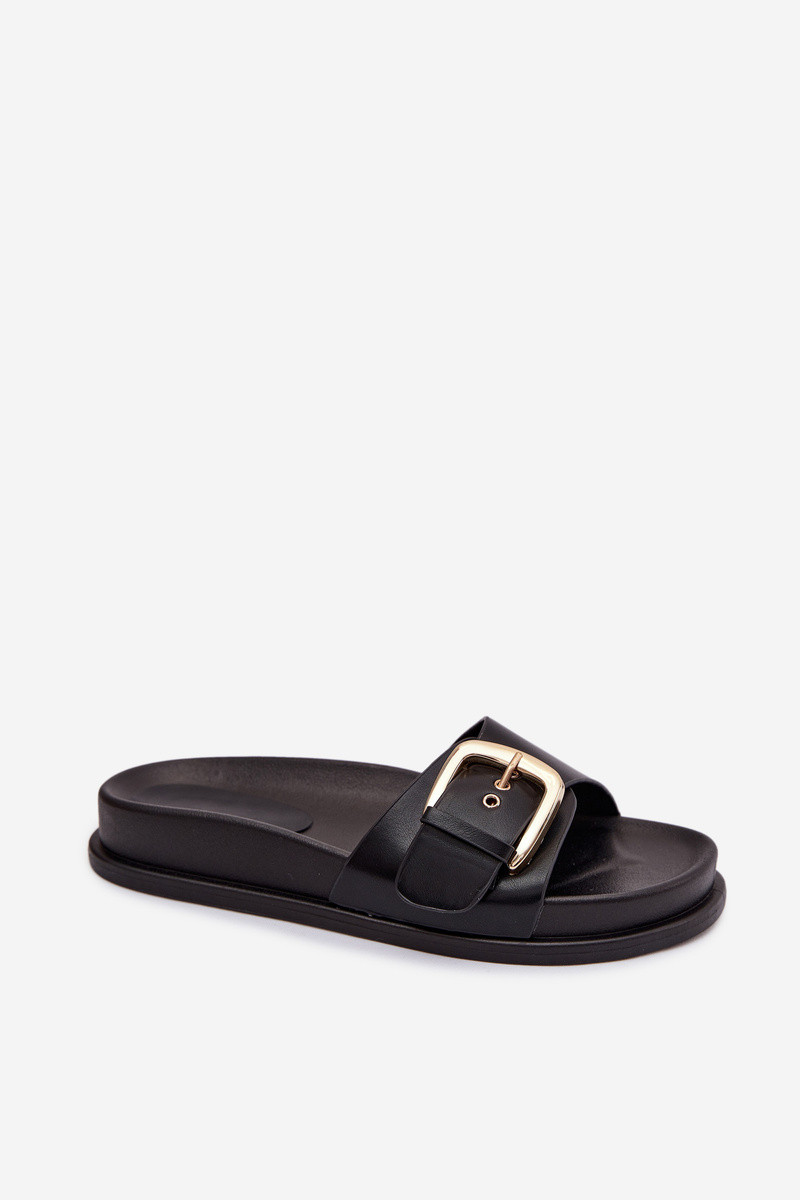 zapatillas de mujer con hebillas doradas de color negro Rosivana