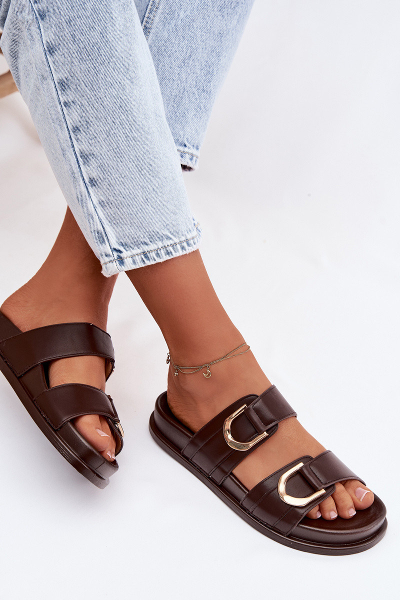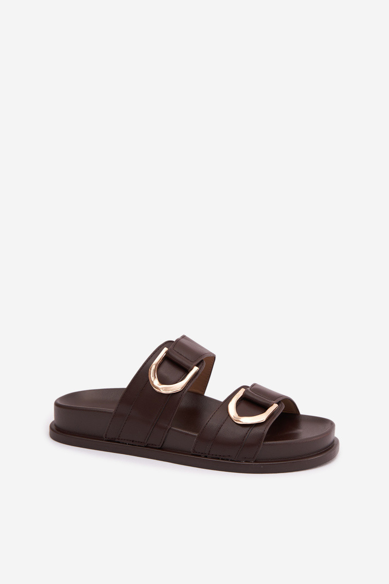 Chanclas femeninas de piel sintética con tiras color chocolate "Rosinessa"
