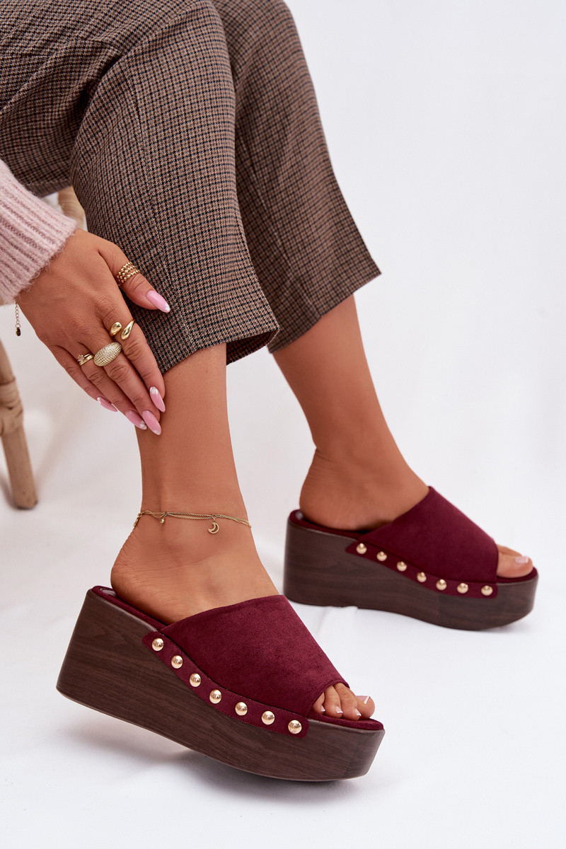 zapatillas de mujer en una cuña Ze color doradomi Studs de gamuza ecológicaoAe borgoña Helivina