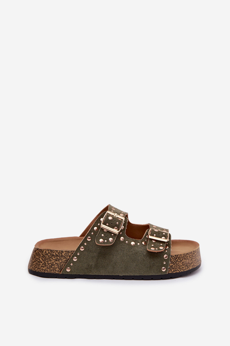 Zapatos de casa dorados para mujer con hebillas y tachuelas de color caqui Tervina