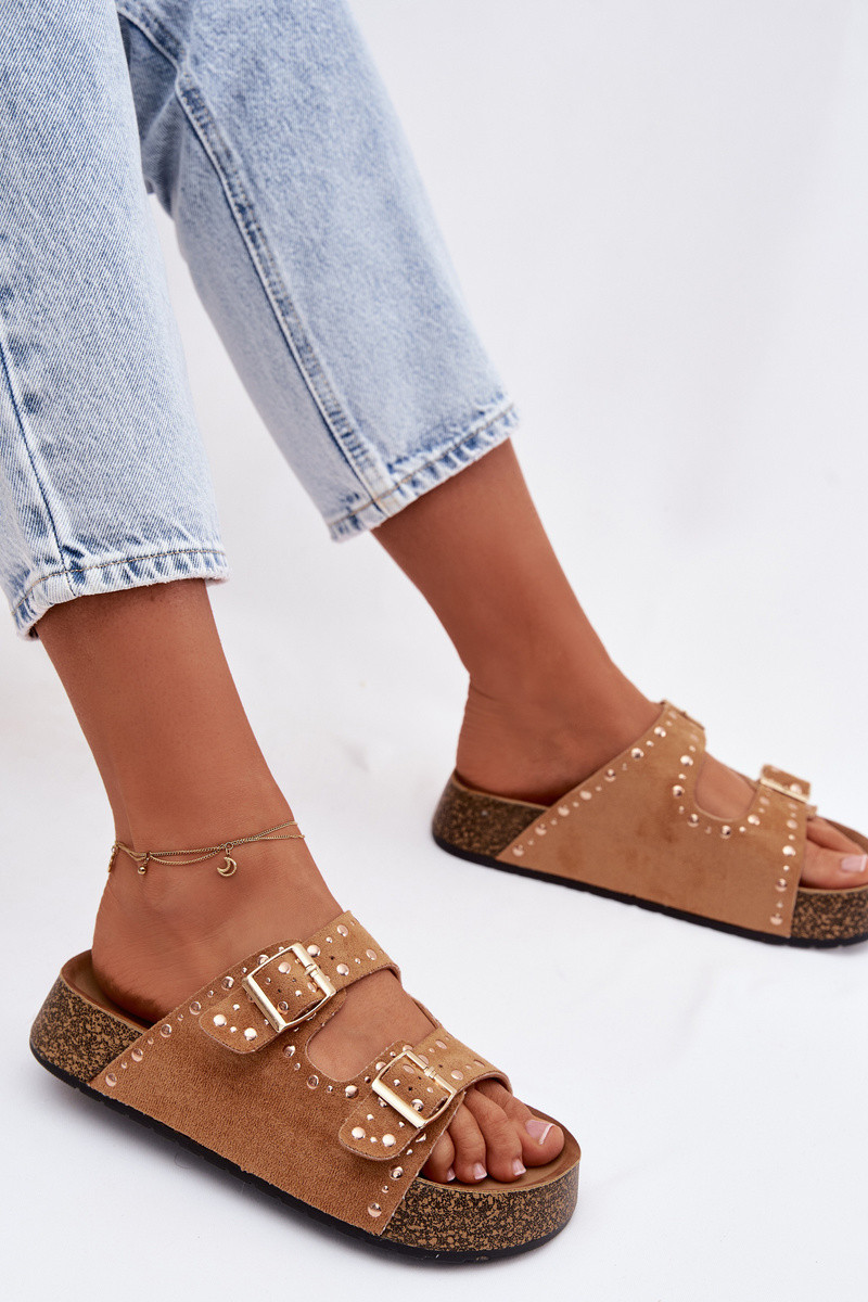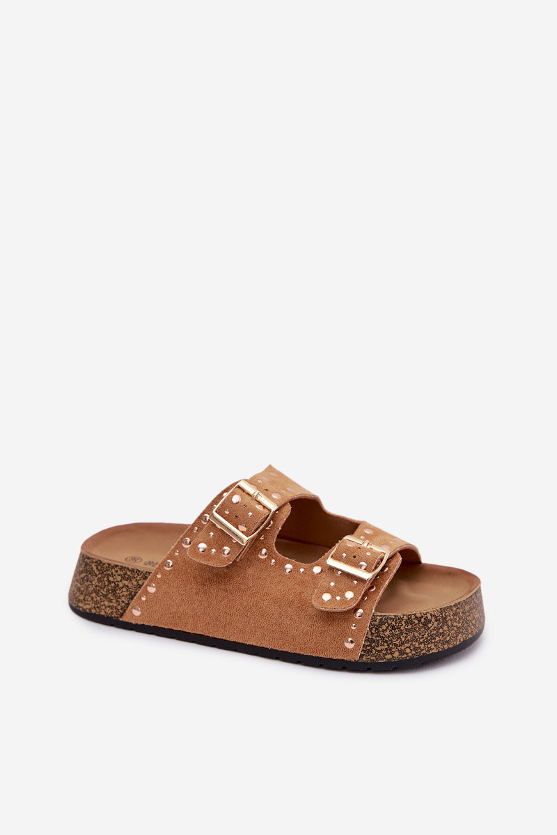Zapatos de casa dorados para mujer con hebillas y tachuelas de color marrón Tervina