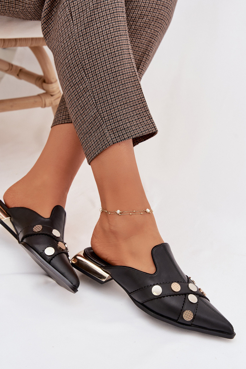 Zapatillas de cuero Mule con tiras D&A CR61-3058 color negro