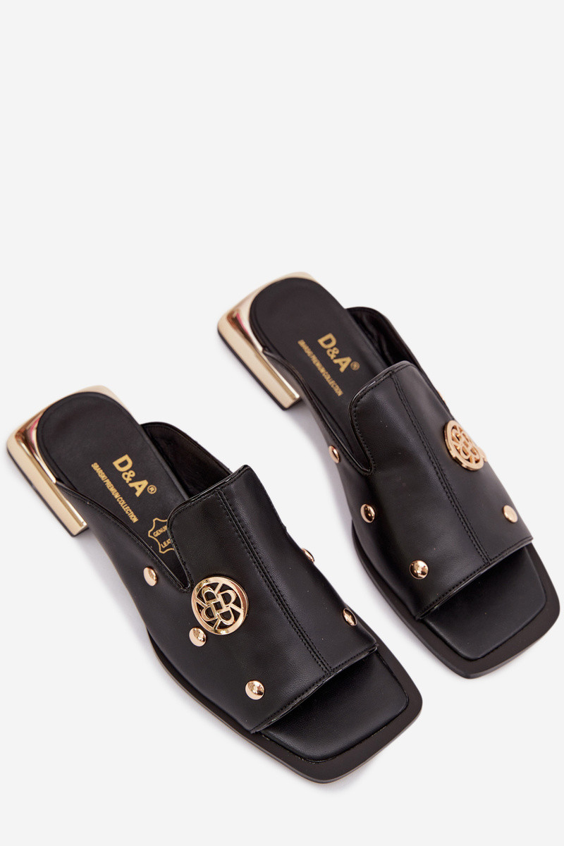 Zapatillas de cuero con adornos dorados D&A CR61-3060 color negro