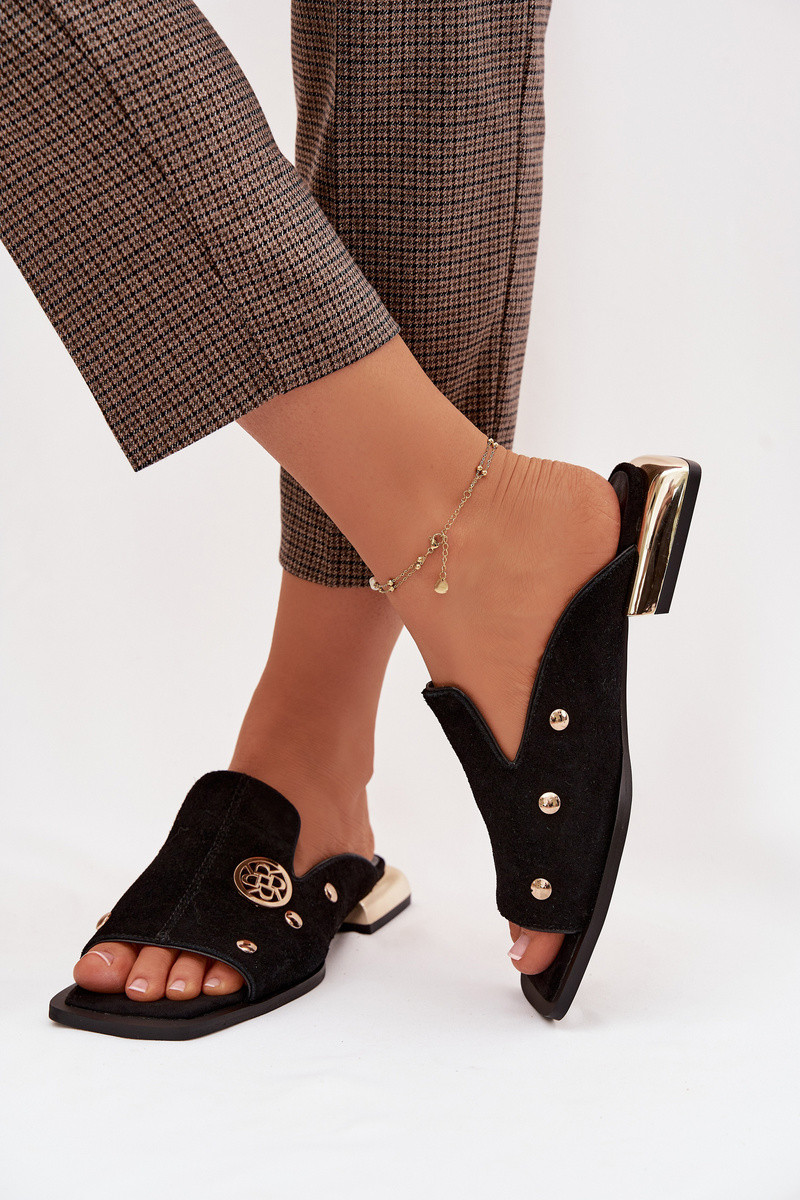 Zapatillas de ante con adornos dorados D&A CR61-3061 color negro
