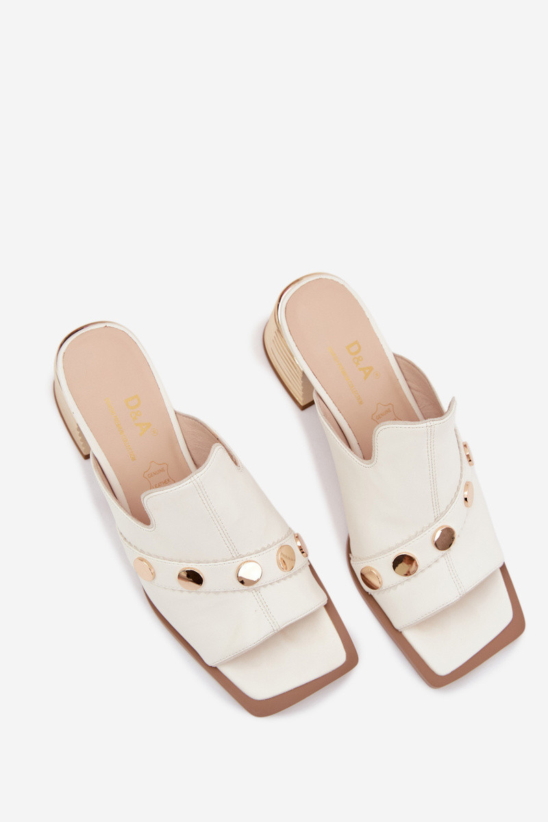 Zapatillas de cuero con tacones y tacones decorados D&A CR61-3063 color blanco