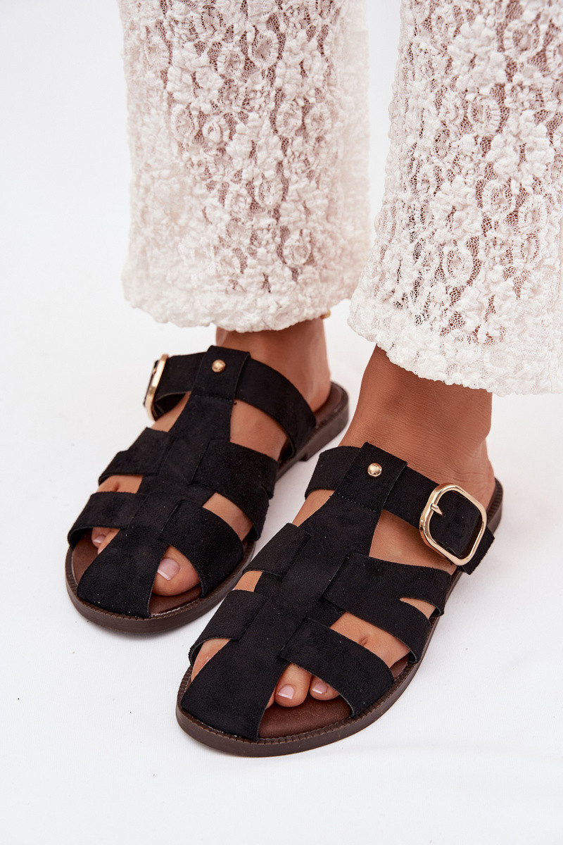zapatillas de mujer con tacones anchos con rayas I Złotą con hebillas de color negro Elzora