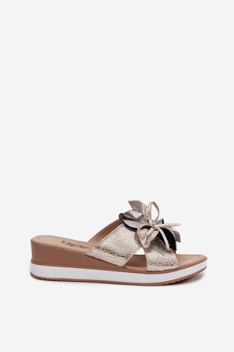 Zapatillas de cuero con una plataformaDekoracyjnym Una flor S.Barski GR61-5989 color dorado