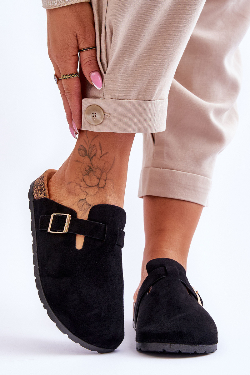 Zapatillas de ante con plataforma de corcho. de color negro Vellma
