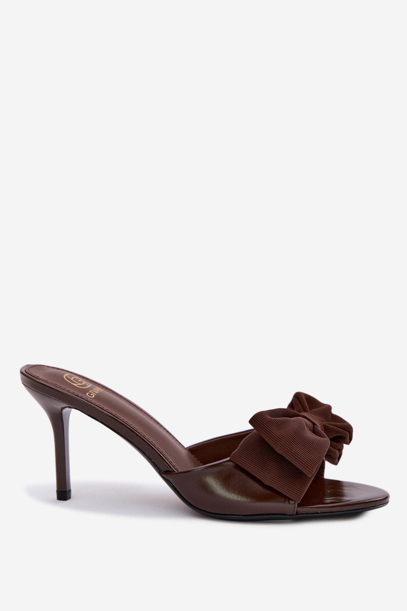Zapatillas de mujer con tacones delgados y lazos color chocolate Jelessa
