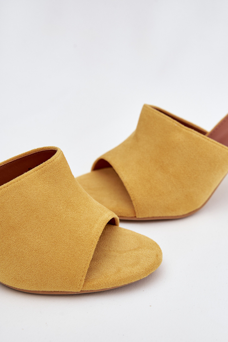 zapatillas de mujer con tacones finosde gamuza ecológicau color amarillo Isolia