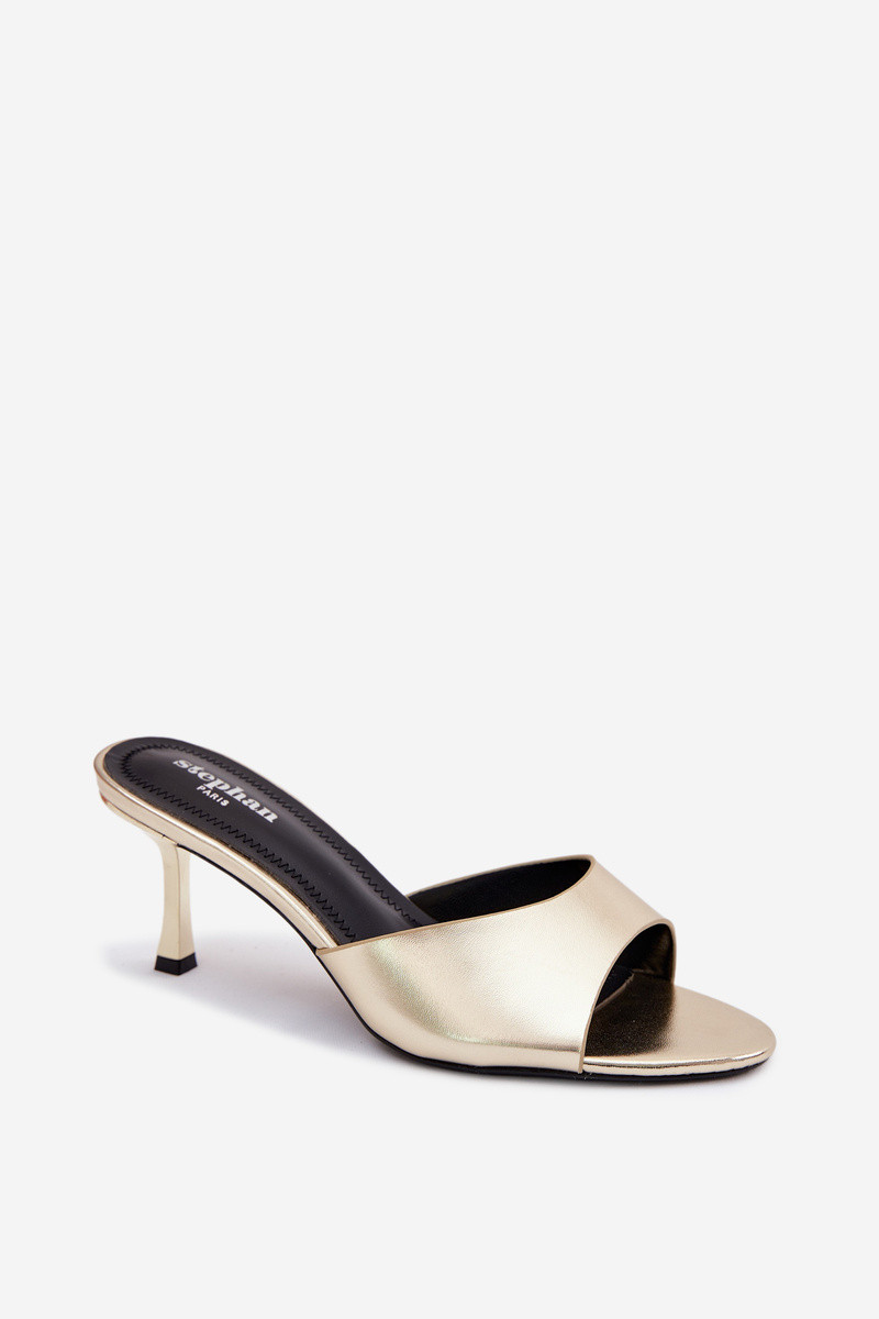 Zapatillas de piel sintética con tacones delgados color dorado Melissea