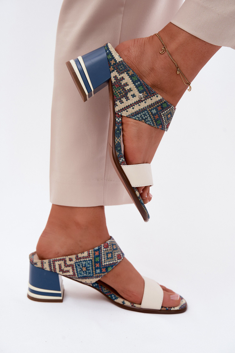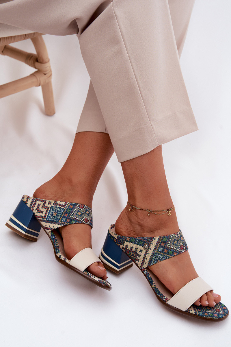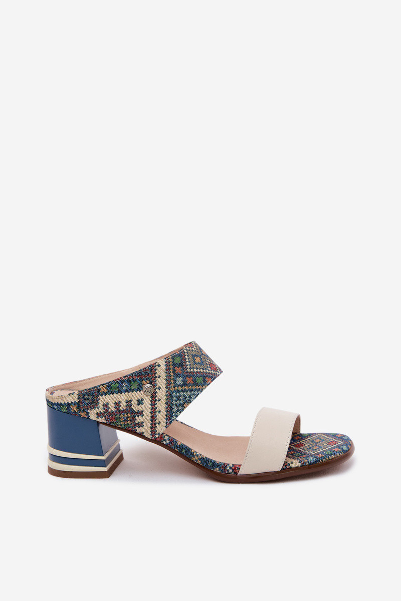 Piel Estampado zapatillas de mujer con tacones Tiene queciejka K7522-04 beige-color azul