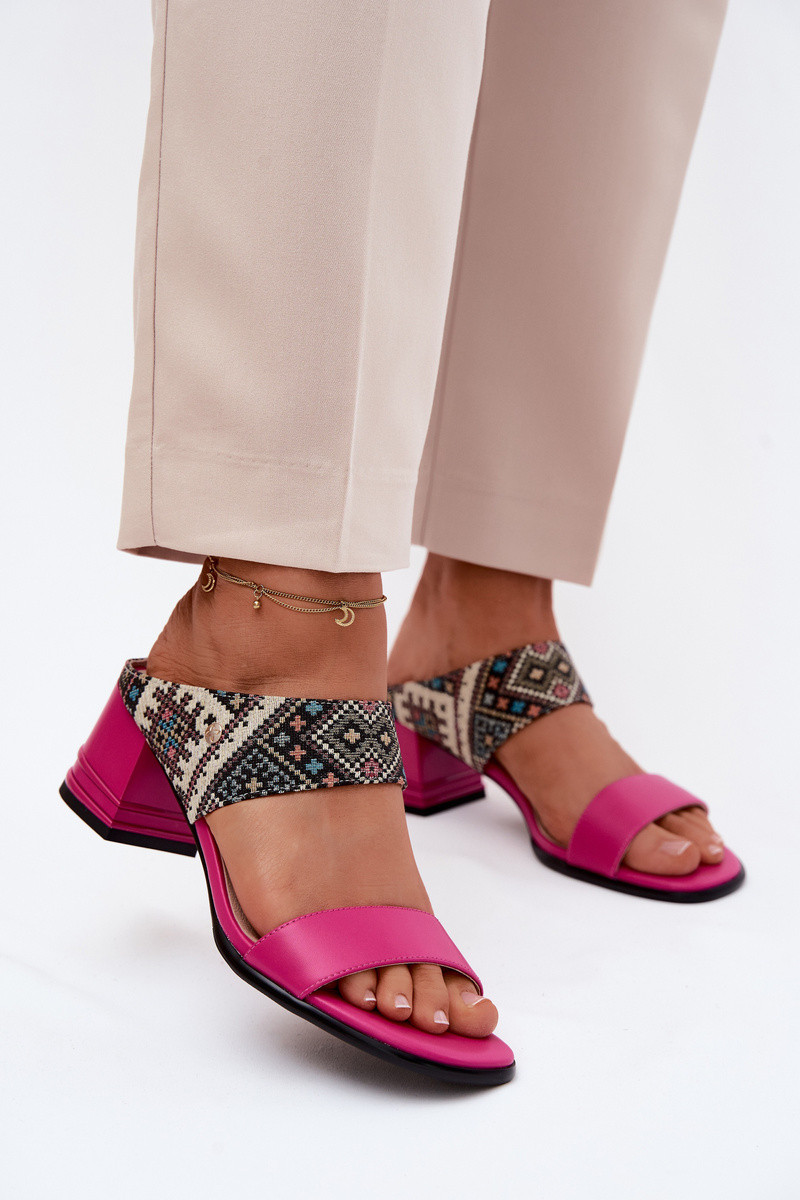 Piel Estampado zapatillas de mujer con tacones Tiene queciejka K7522-15 color rosa