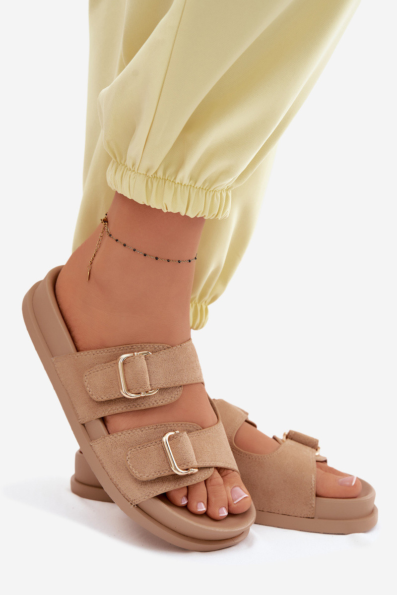 Chanclas de color arena para mujer con hebillas doradas Pelorin