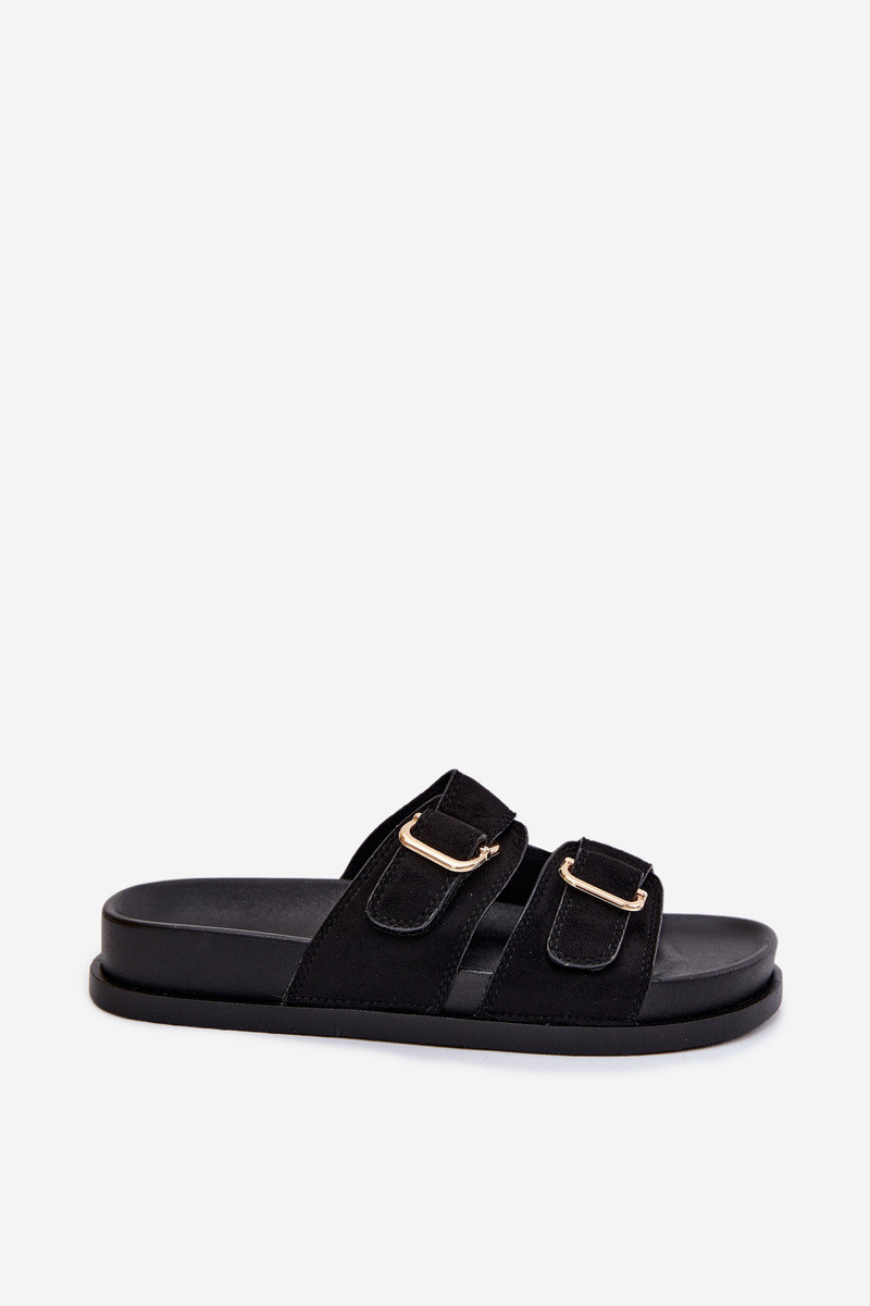 zapatillas de mujer Ze color doradomi con hebillasmi de color negro Pelorin