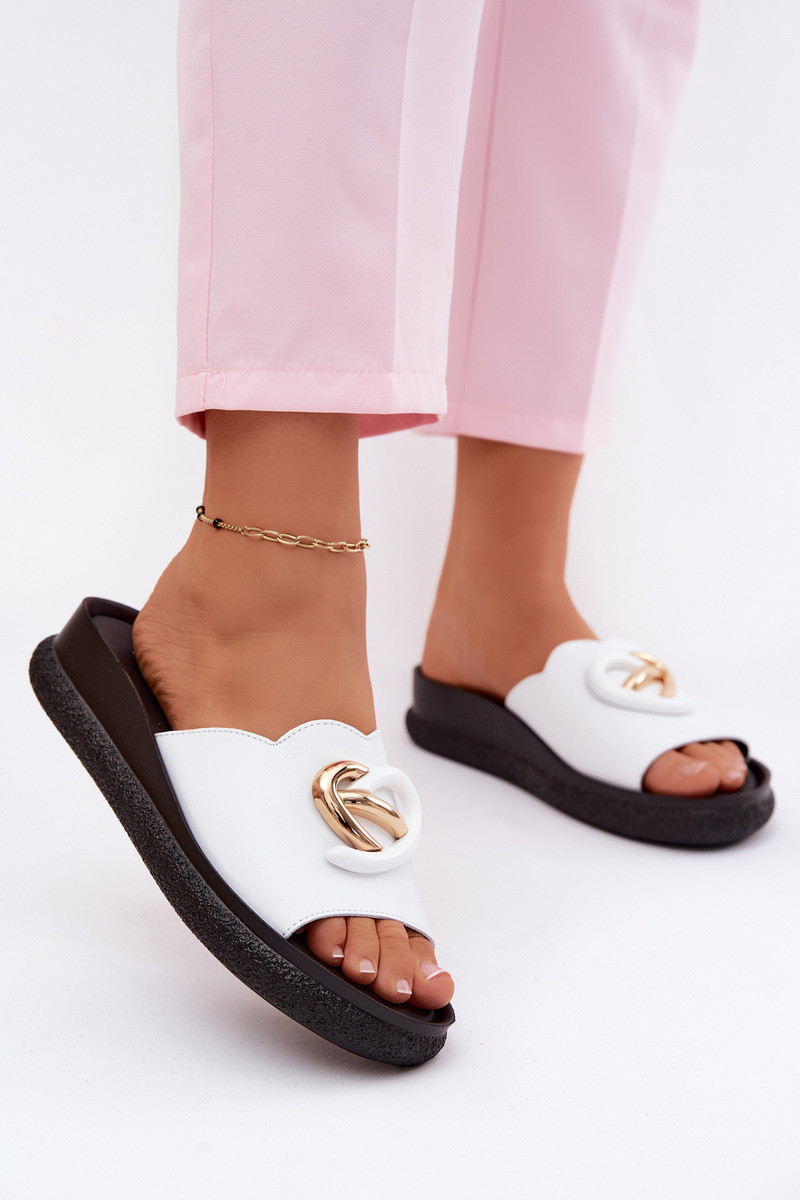 Zapatillas de cuero con detalles decorativos en blanco