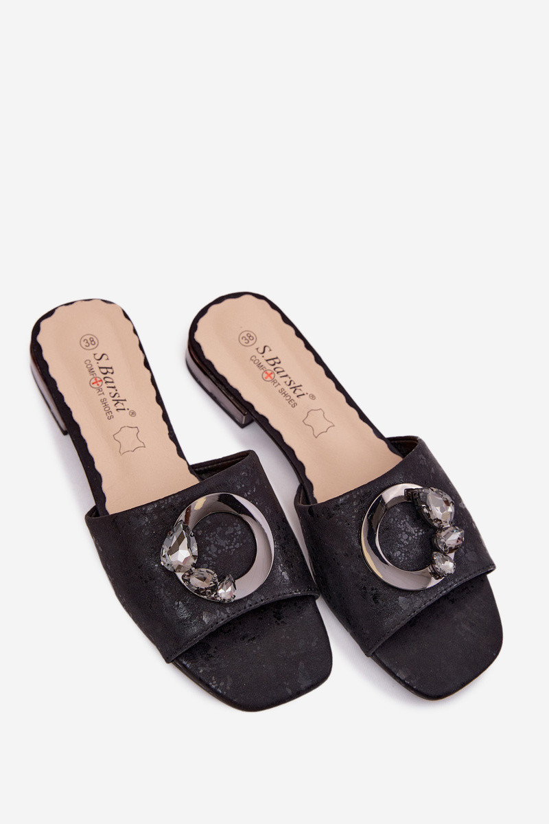 Zapatillas de mujer con tacones anchos y ornamentos KV61-6025 color negro