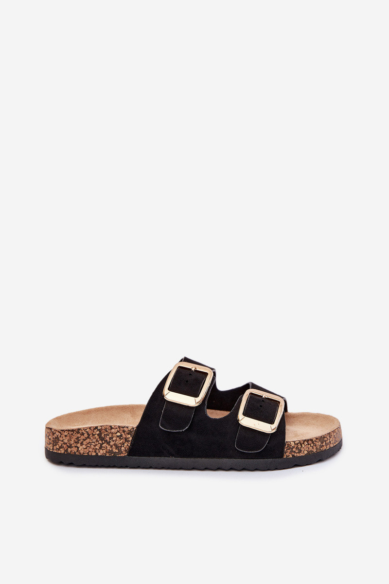 Zapatillas de ante sintético color arena con hebillas doradas Vorella