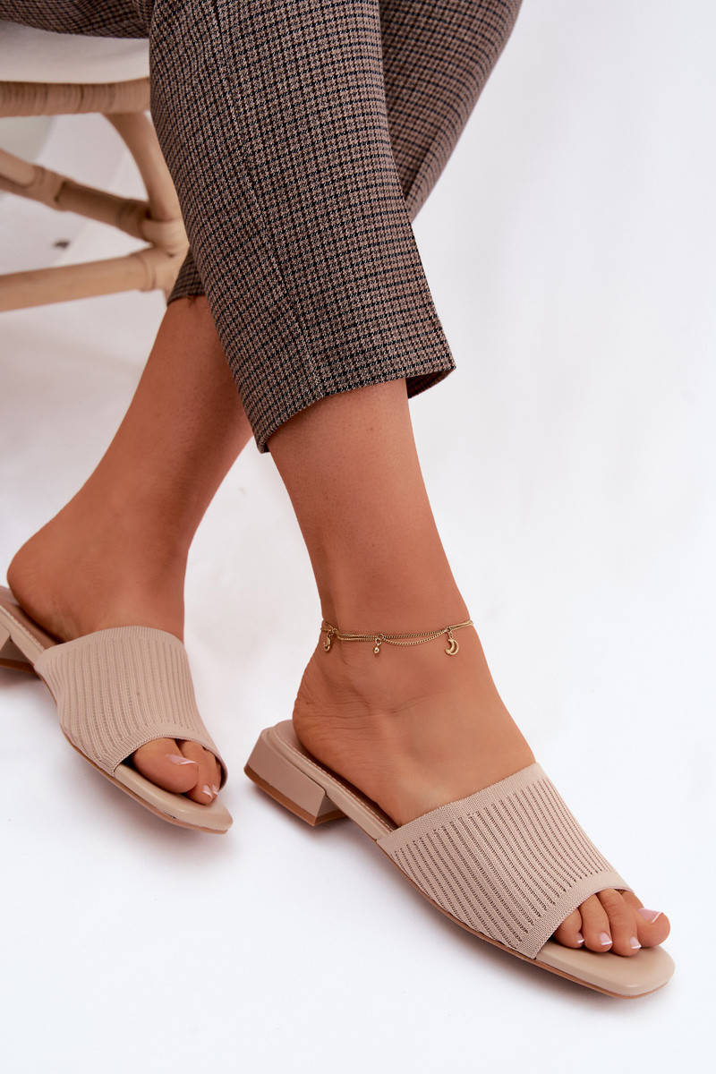 Zapatillas de mujer color arena con tacones anchos Belissea