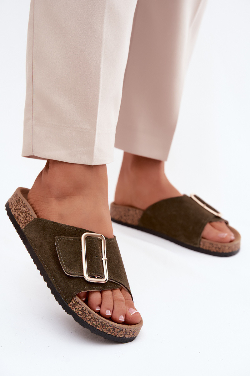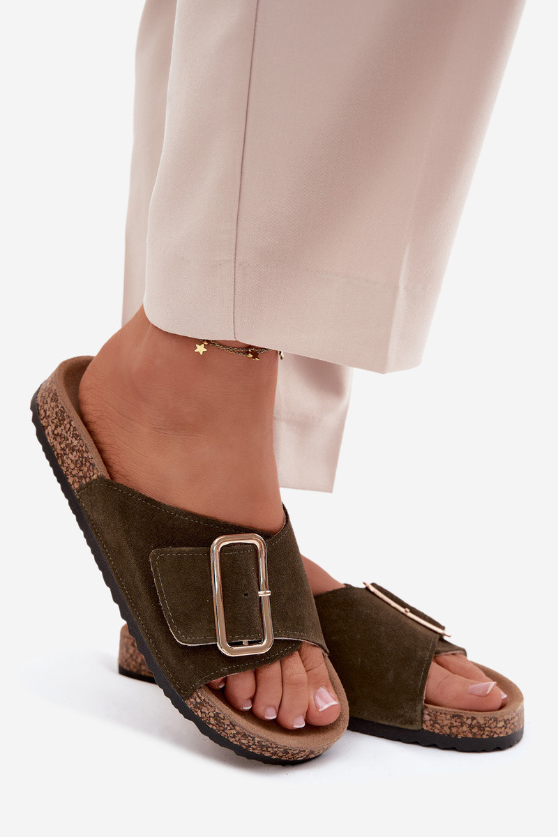 Piel Zapatillas de ante para mujer. con hebillas de color caqui Beryl