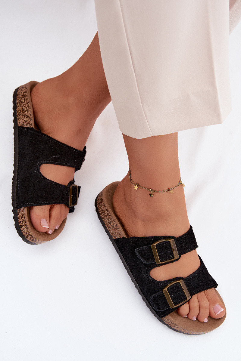 zapatillas de gamuza Sobre suela de corcho con hebillas de color negro Tavira