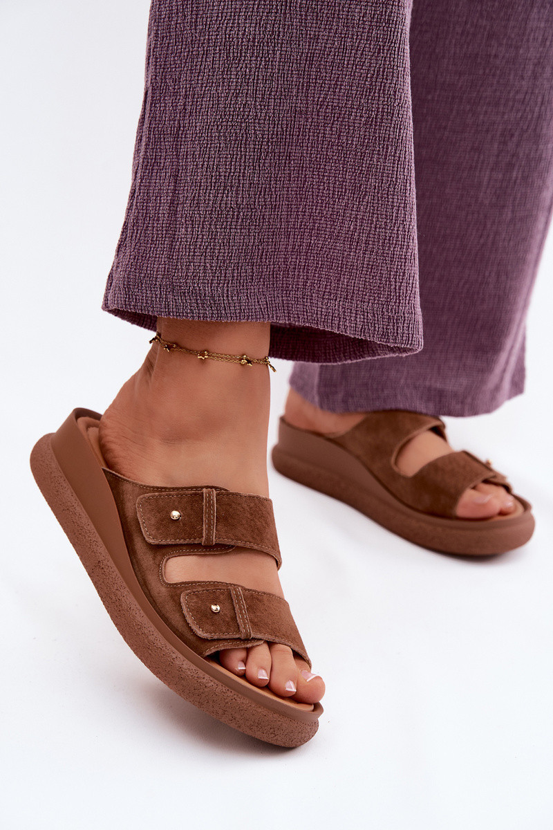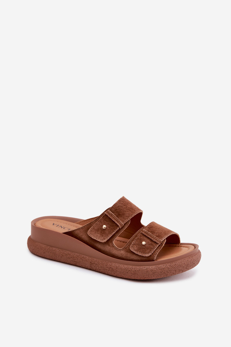 Piel Zapatillas de ante para mujer. con una plataforma Vinceza 66916 color marrón