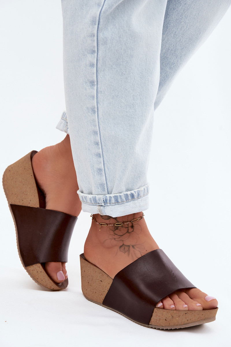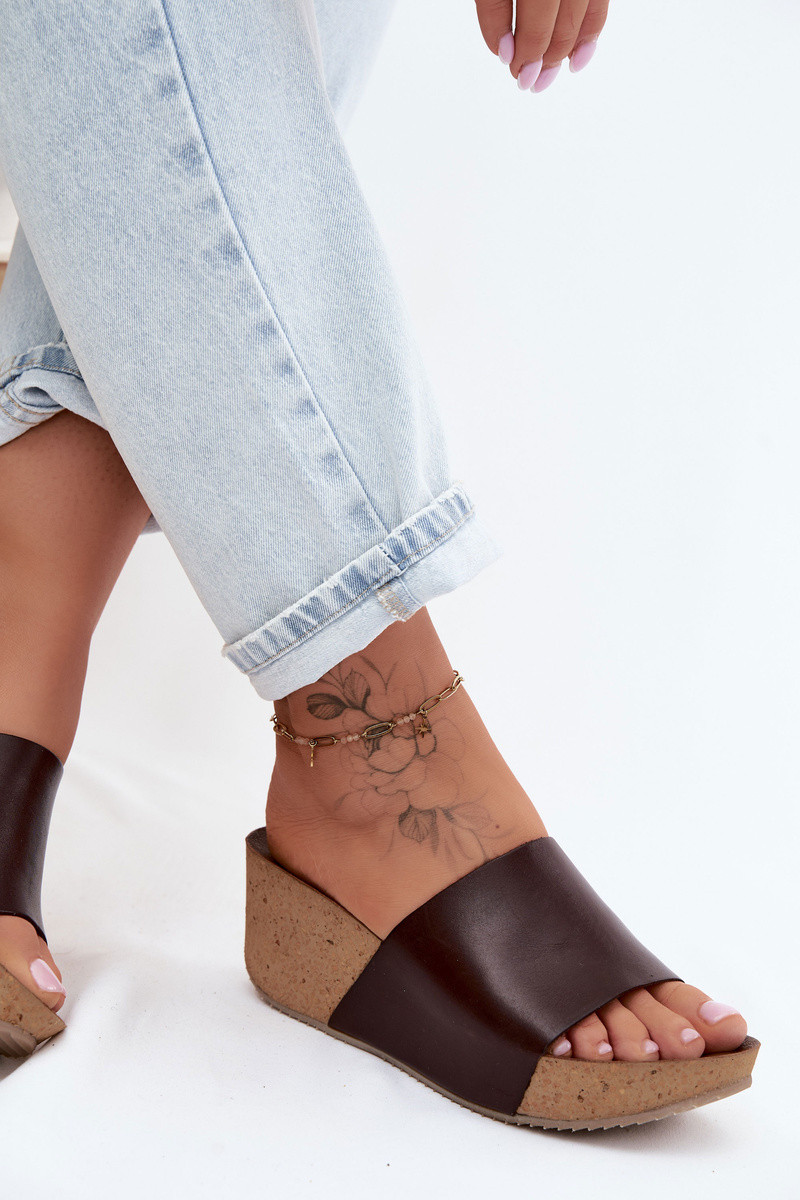 Zazoo 40291 Zapatillas de cuero marrón para mujer sobre suela de corcho