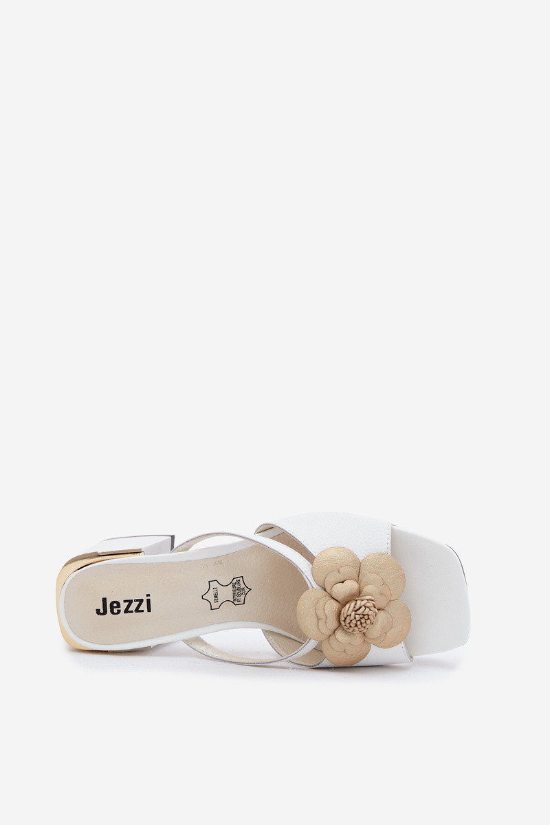 Zapatillas de cuero Femenino con tacones con una flor el color blanco Catva