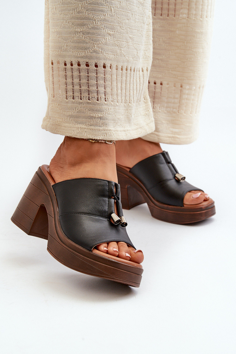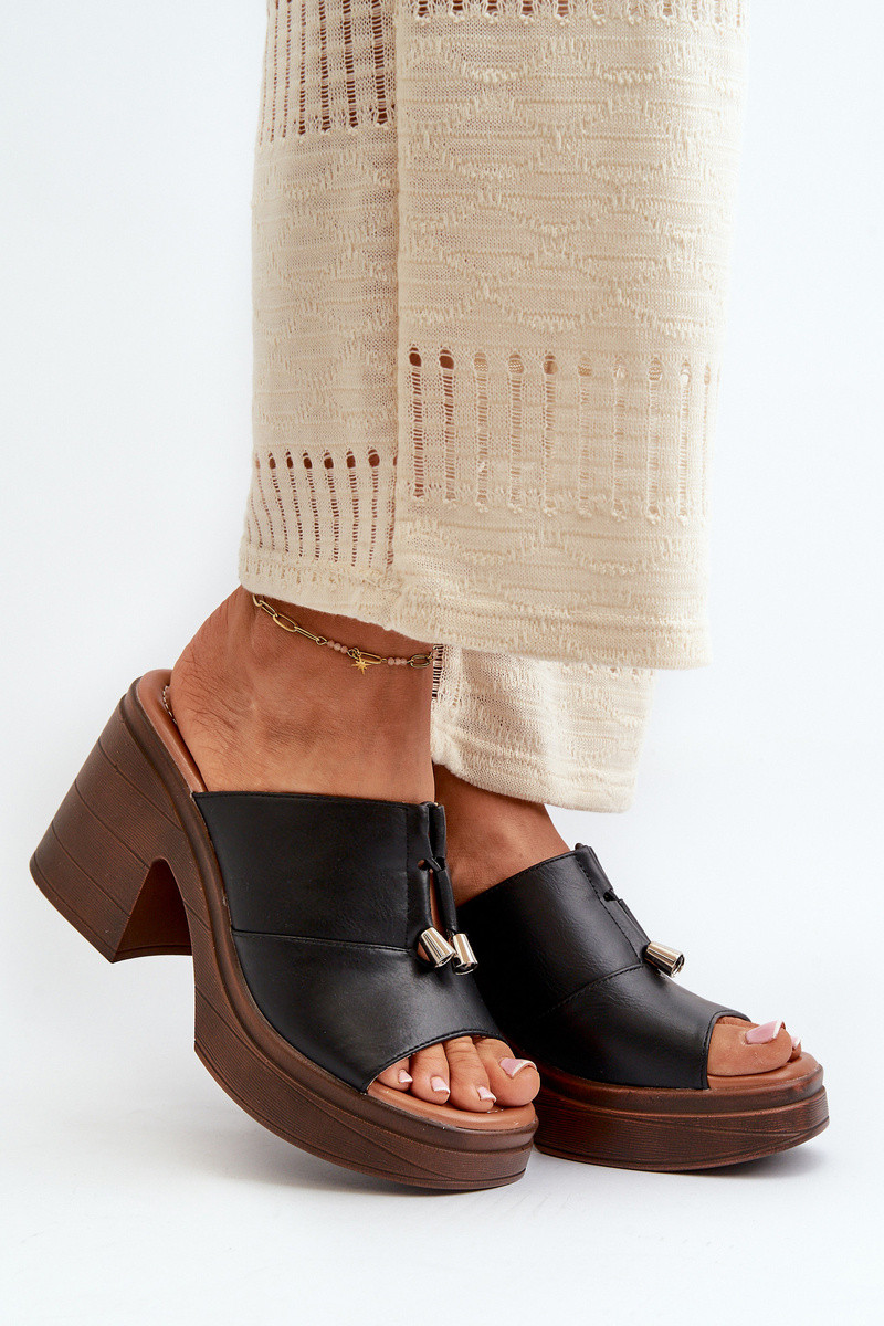 zapatillas de mujer de cuero ecológico con una plataforma I Klocku de color negro Dafira