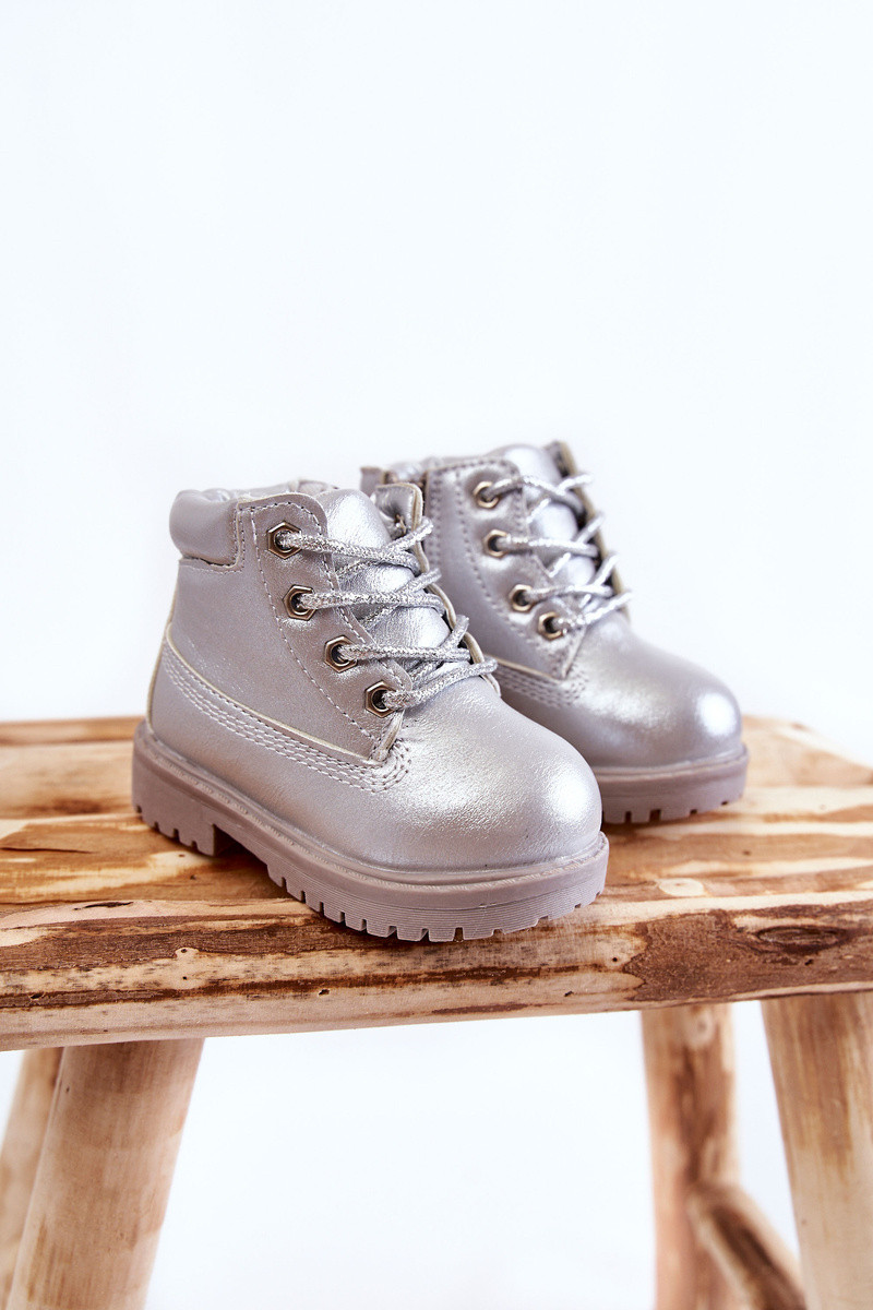 Botas infantiles con cordones y cremalleras en color plateado Dexter