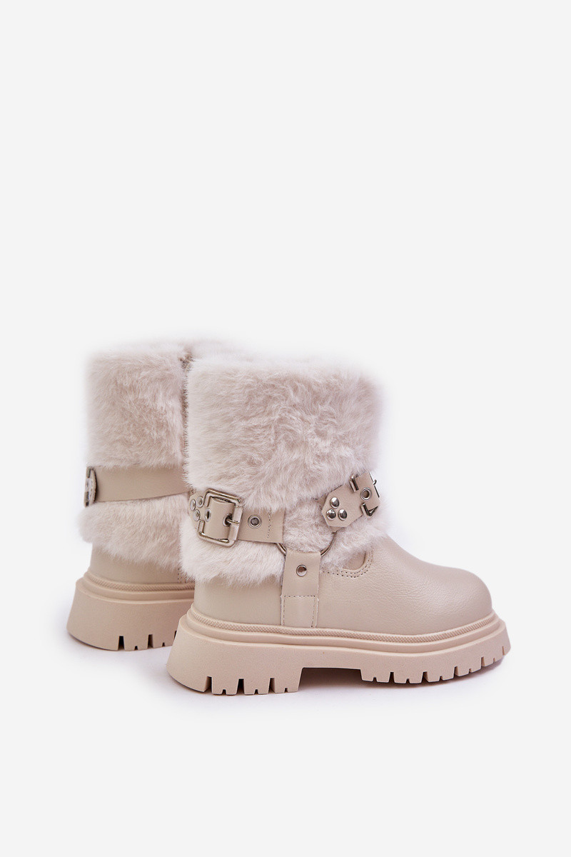 Botines de cuero sintético para niños con pelo y hebillas color arena Cartemes