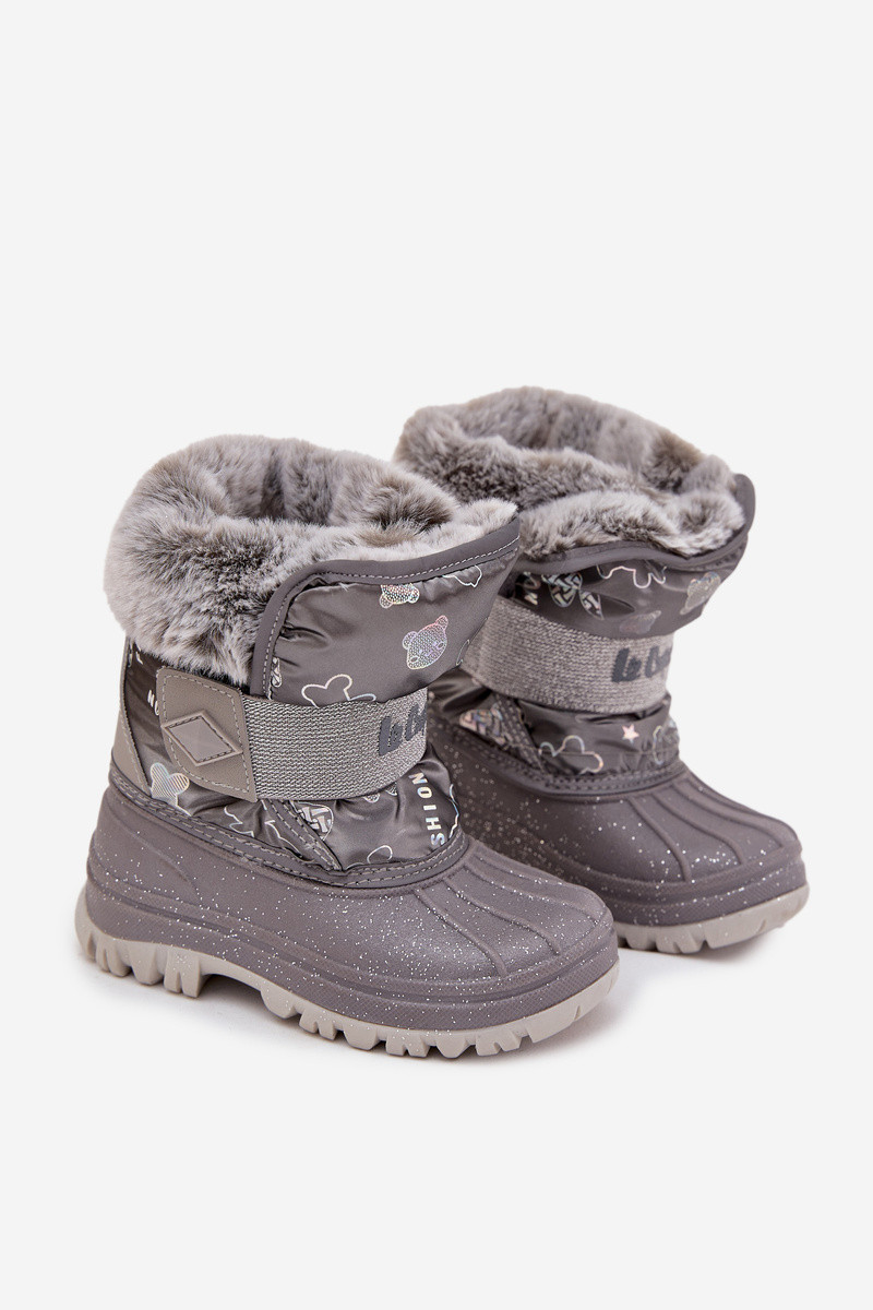 Botas de nieve para niños Lee Cooper LCJ-25-10-3788 color gris con pelo y cierres adhesivos