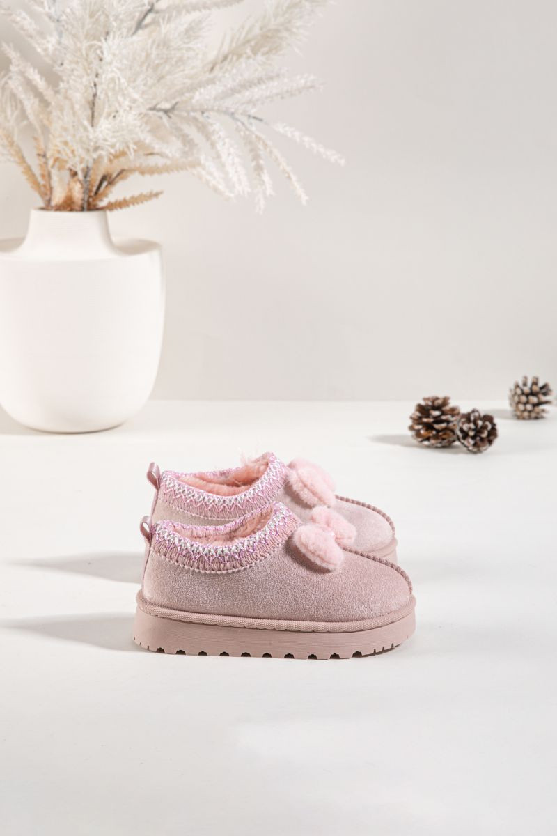 Botas de nieve infantiles con bordado y lazo, color rosa Daven