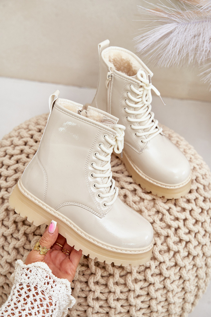 calentamiento Botas Infantil con efecto barniz Al castillo beige Novita
