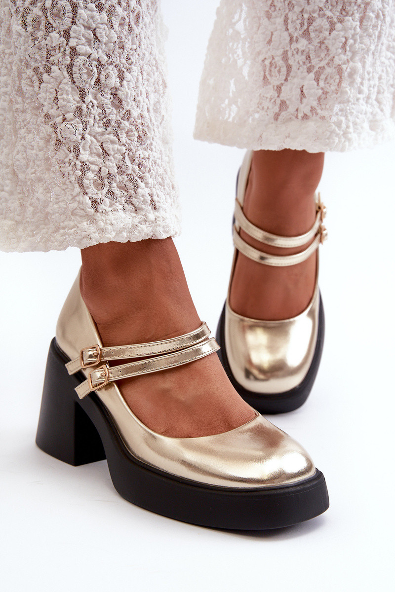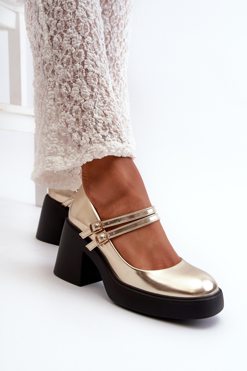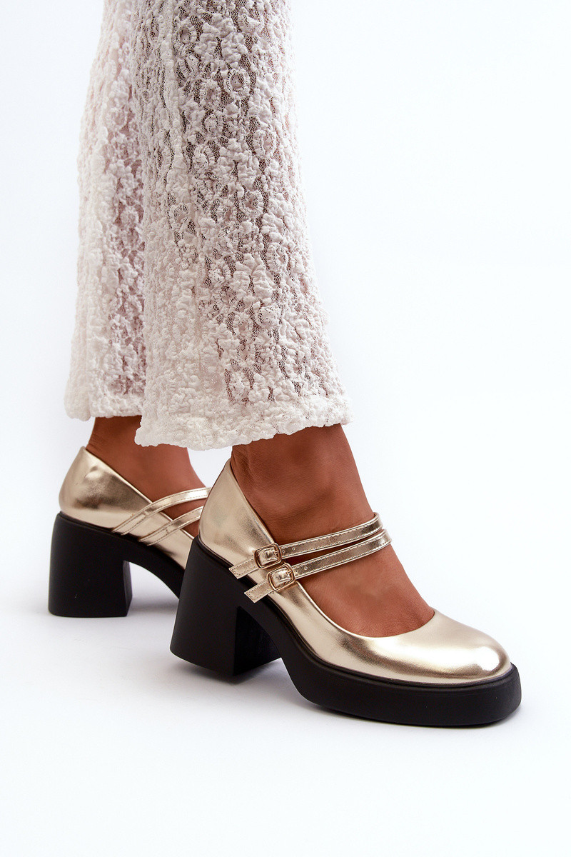 Zapatos de mujer en color dorado con tacón ancho de cuero sintético Halmina