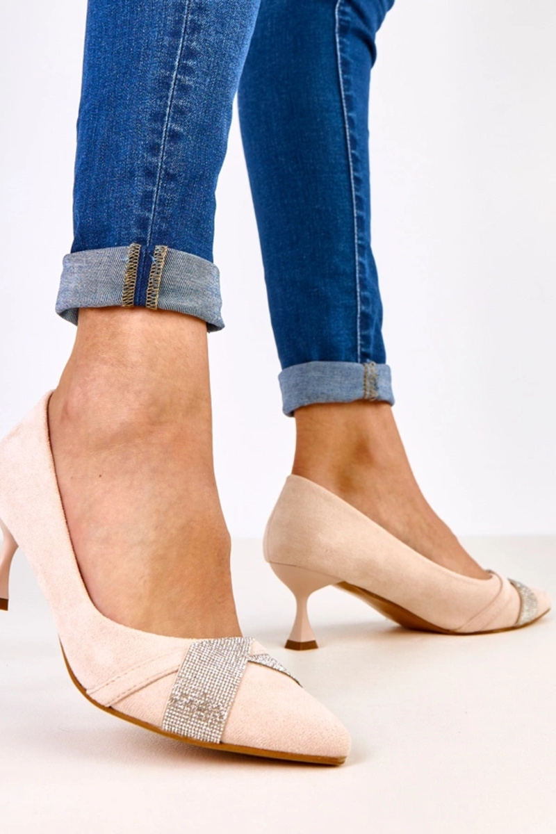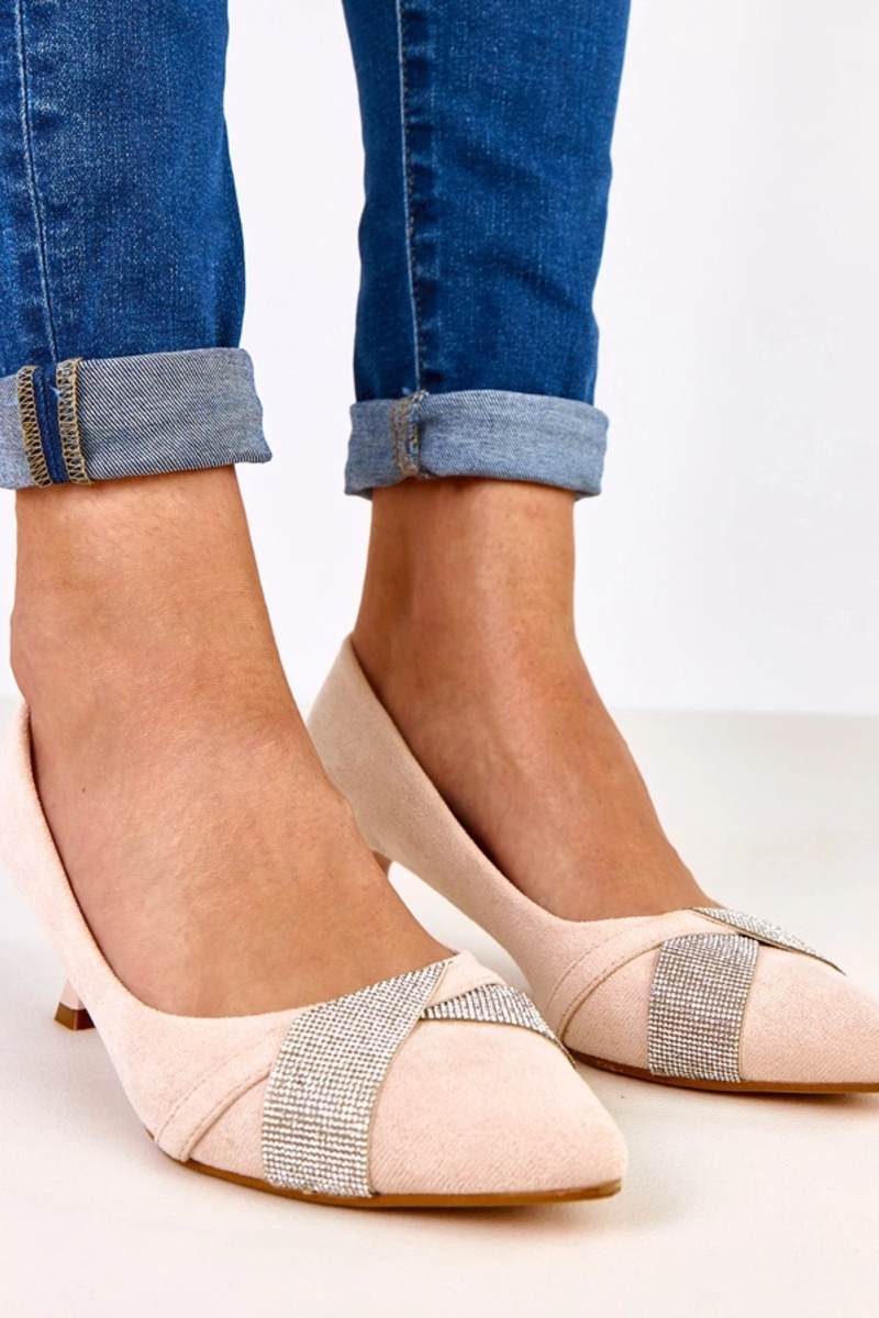 Zapatos de tacón color arena con tacón bajo y circonitas, Tajlana