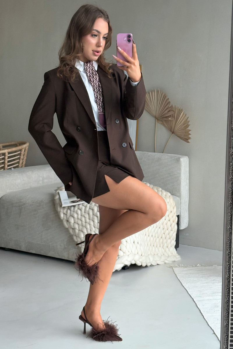 Zapatos de tacón alto con plumas y tacón abierto color chocolate Belice