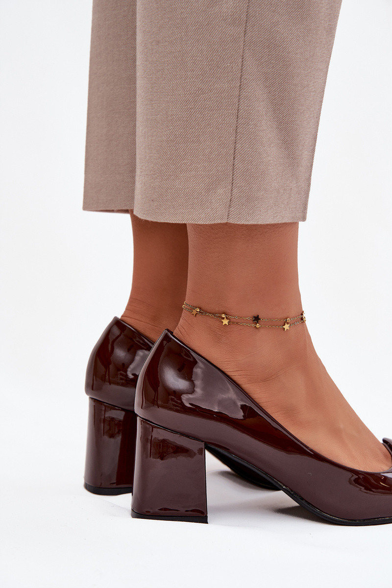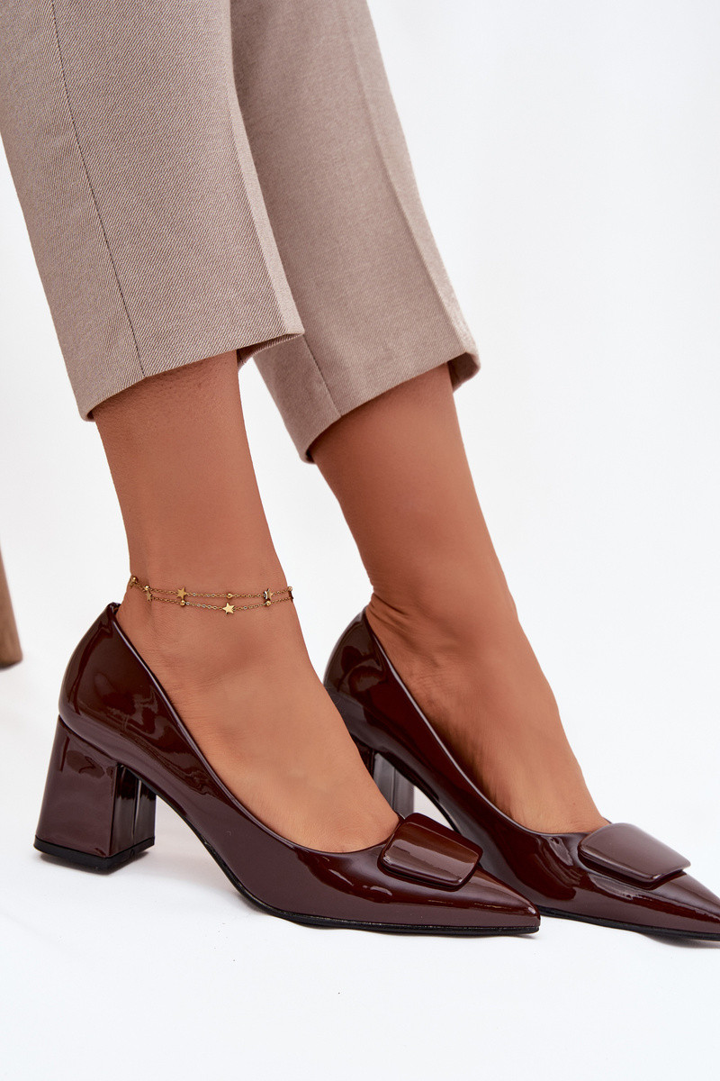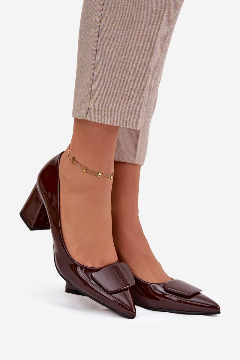 Zapatos de charol con tacones y adornos, chocolate Isoline