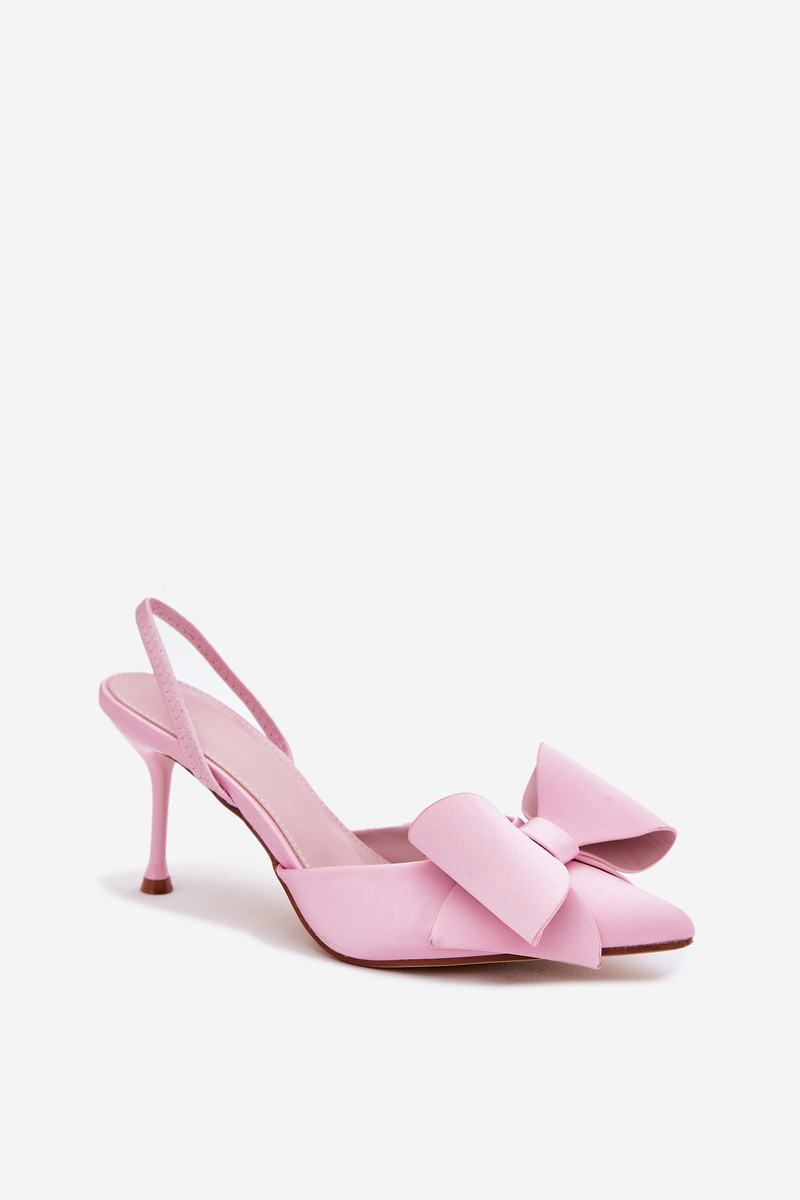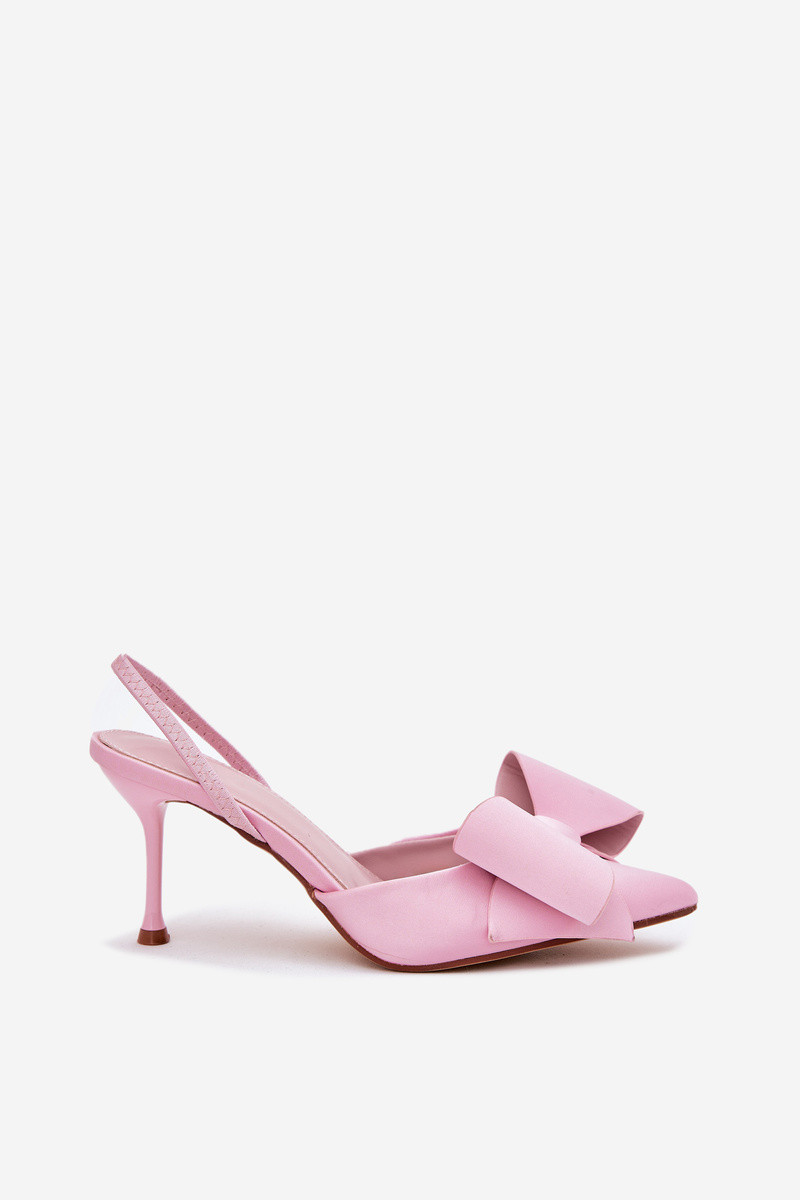Zapatos de tacón rosa con parte del talón abierta y lazo Eklevia