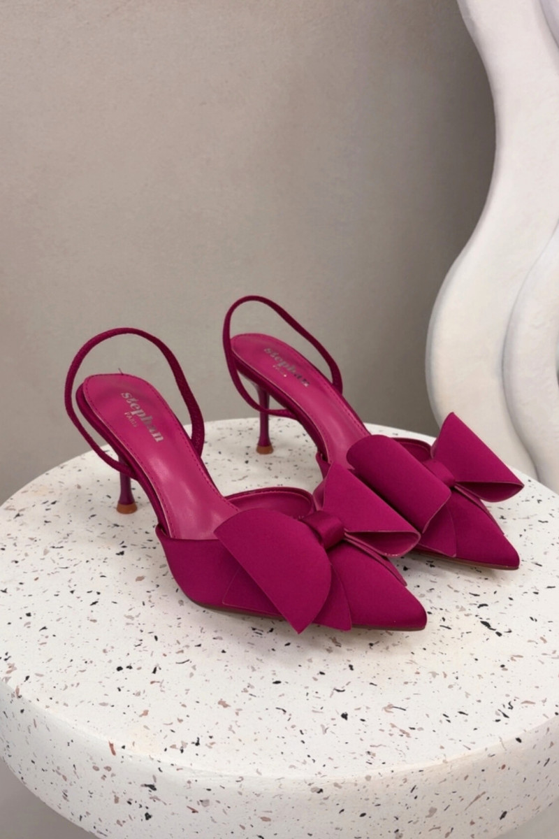 Zapatos de tacón rosa con talones abiertos y lazo "Eklevia"