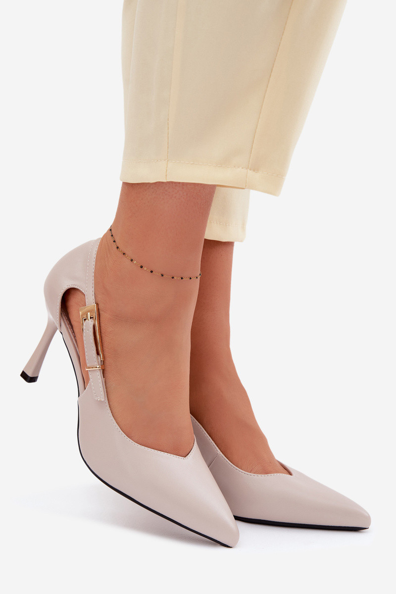 Zapatos de tacón con cortes y hebillas Vinceza 62288 color gris