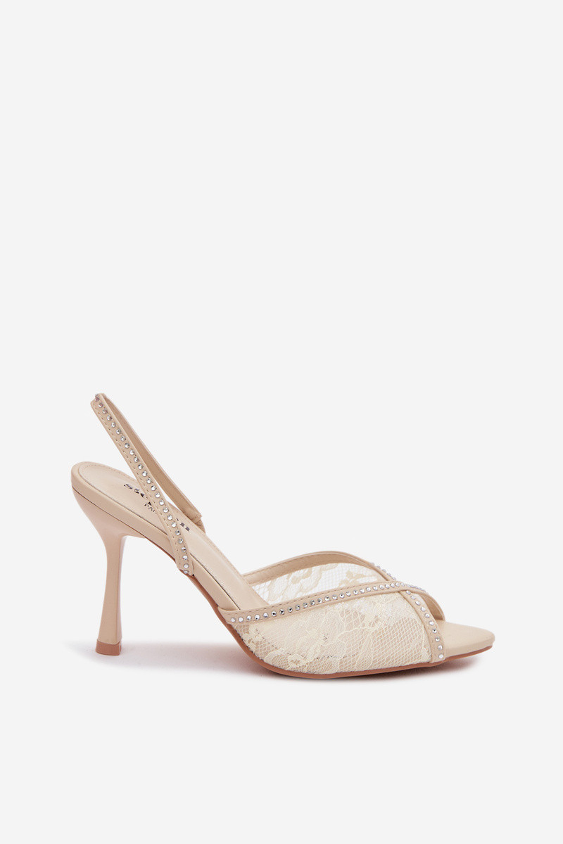 Sandalias de mujer con tacones finos con encaje I Zdobieniem beige Melivelle