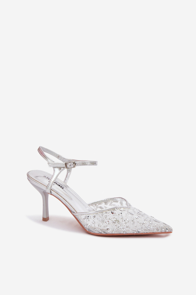 red Sandalias de mujer con tacones finoscon brilloującym Zdobieniem color plata Laria